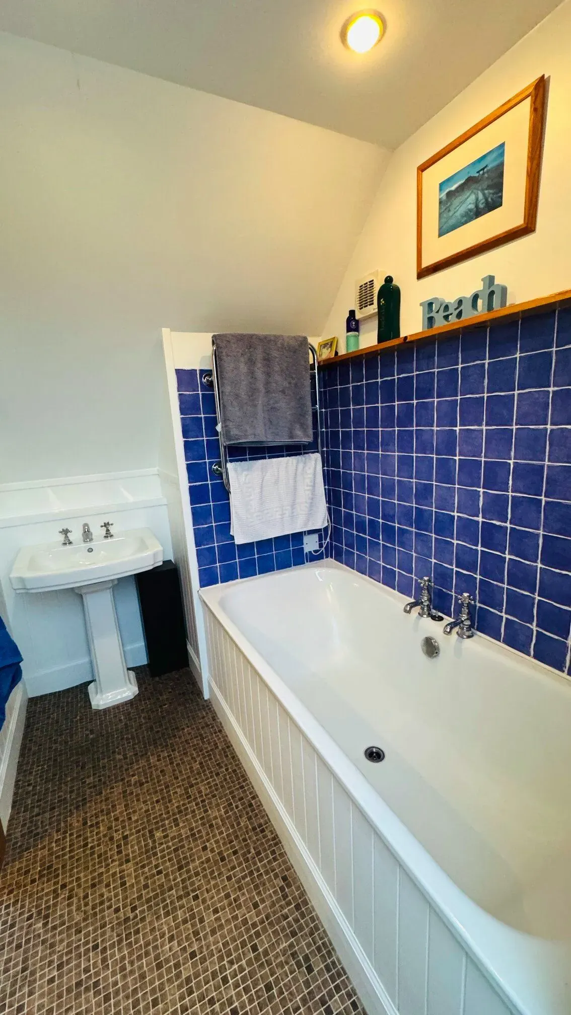 An internal door leads to the hallway off which are two double bedrooms and a bathroom with a spa bath. There is also an external door leading to a private garden. The larger of the two bedrooms is currently configured as a double but is large enough to accommodate twin beds or even be a family room.