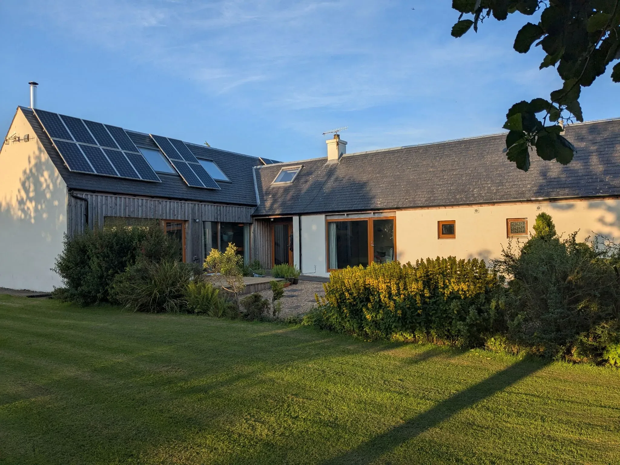 There is also a large enclosed plot for hens, raised beds for vegetables, willow coppicing, two large lawned areas and several patios. Over 400 beautiful and different types of trees and shrubs provide both shelter from the winds, privacy and fuel for the stove. The ground is suitable for small scale livestock / horses.