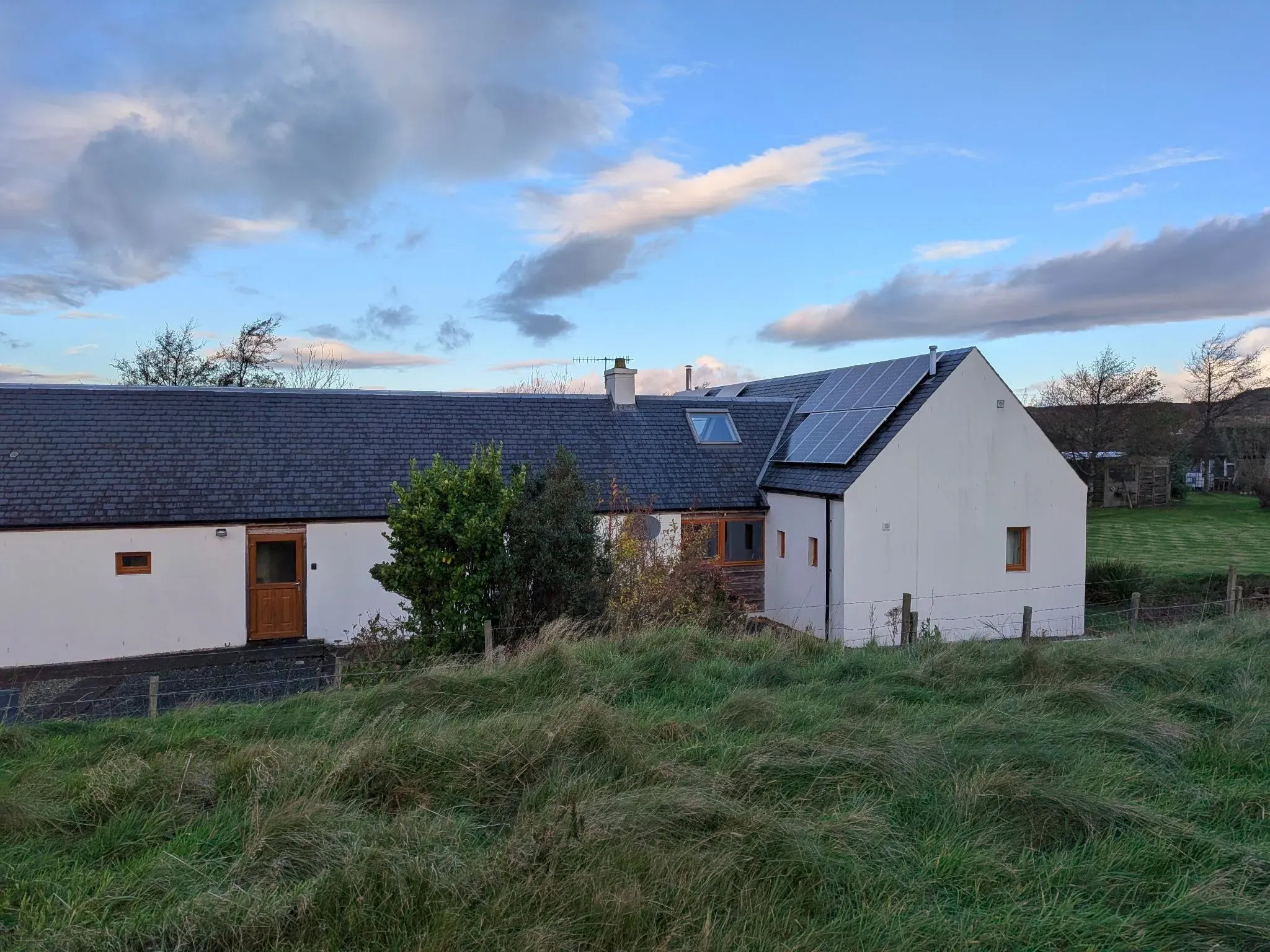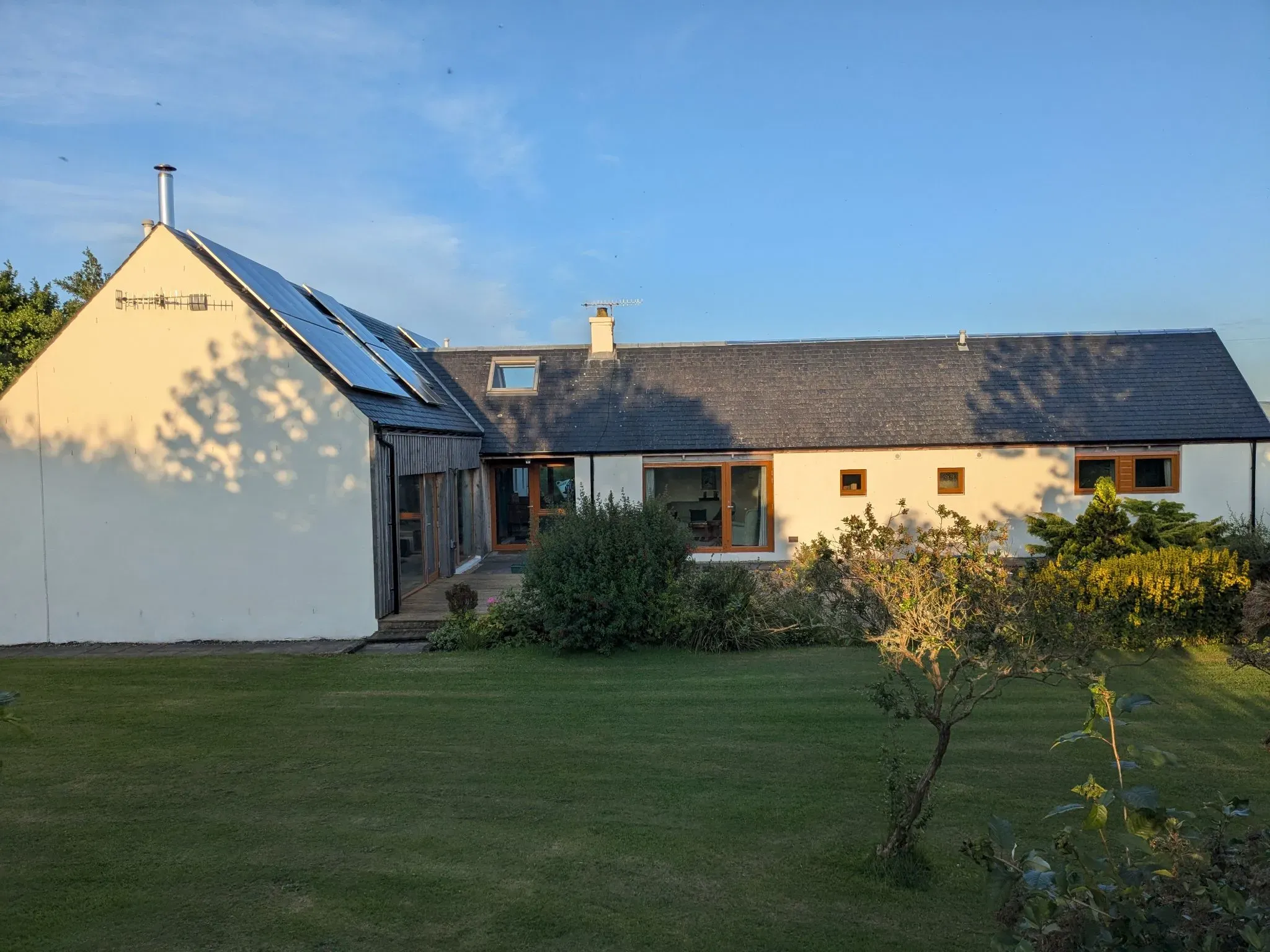 Andy and Viv moved to the Hebridean Isle of Gigha in 2000 to take over the lease of Gigha Stores and Post Office. In 2003 we decided to sell the business and build a family home for ourselves and for Viv's parents. We contracted Dualchas Architects from Skye, they project-managed the build and the house was finished in May 2004 by local builders D MacGregor of Tarbert. We also leased some 0.5 hectres of ground around the house on an agricultural agreement and registered as a small-holding.